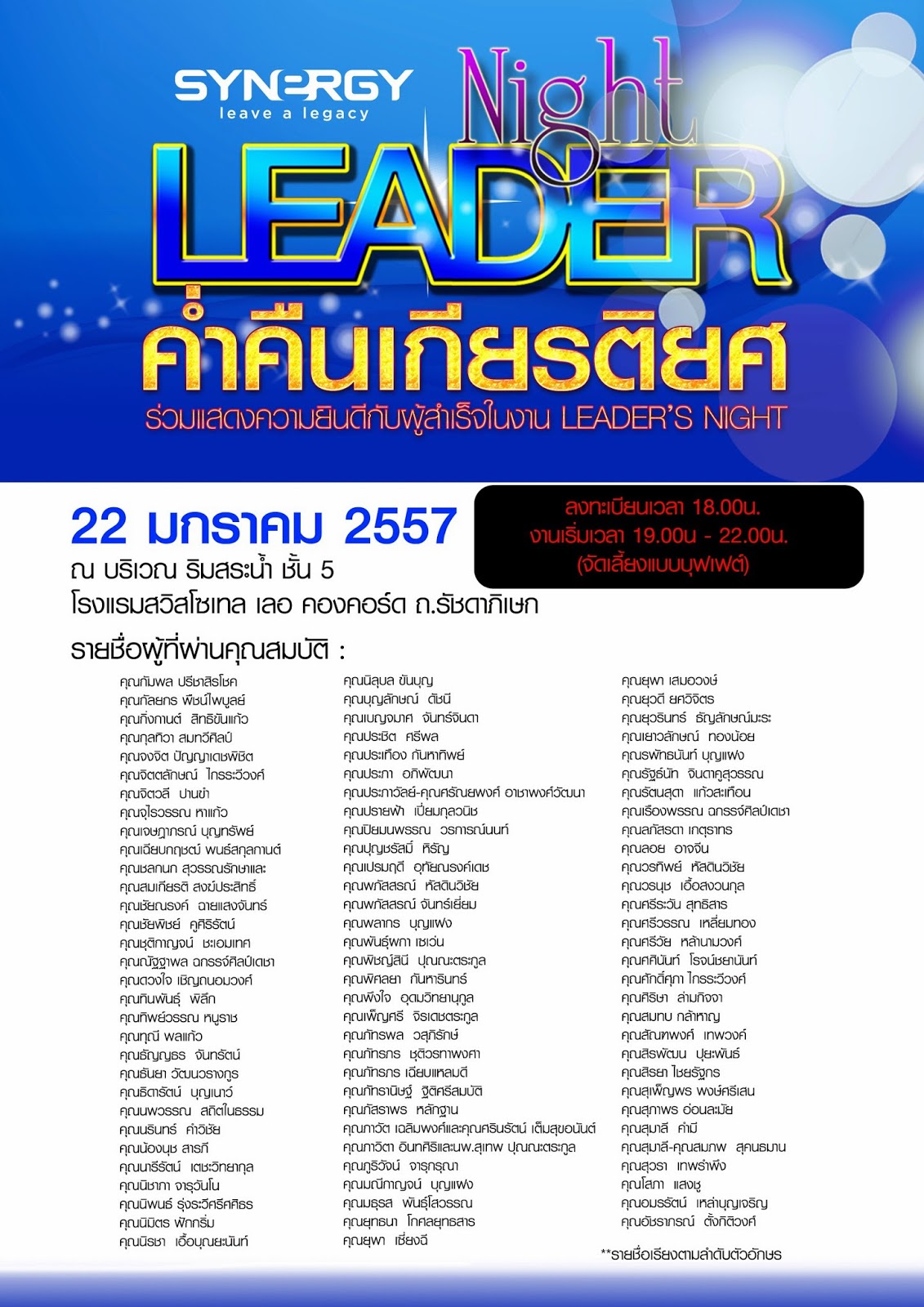 - Cash Reward 2014 โบนัสพิเศษสำหรับ TeamLeader ขึ้นไป